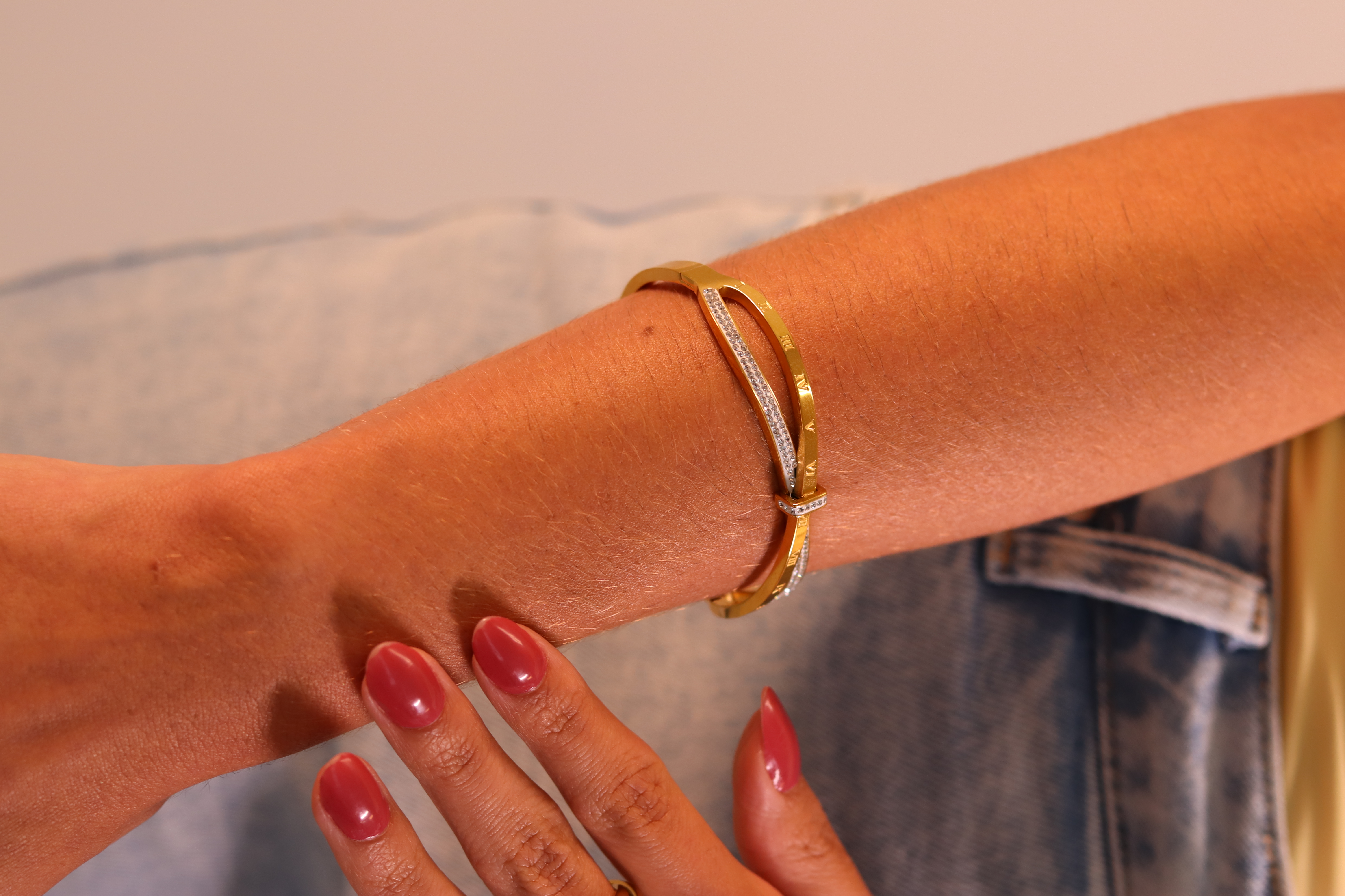 Disponível na versão dourada, é perfeito para uso diário ou composições mais refinadas, permitindo combinações com outros braceletes e relógios sem perder sua presença elegante. Seu visual moderno realça a personalidade com discrição, tornando-se um acessório indispensável na curadoria pessoal de quem aprecia beleza e simplicidade bem projetadas.